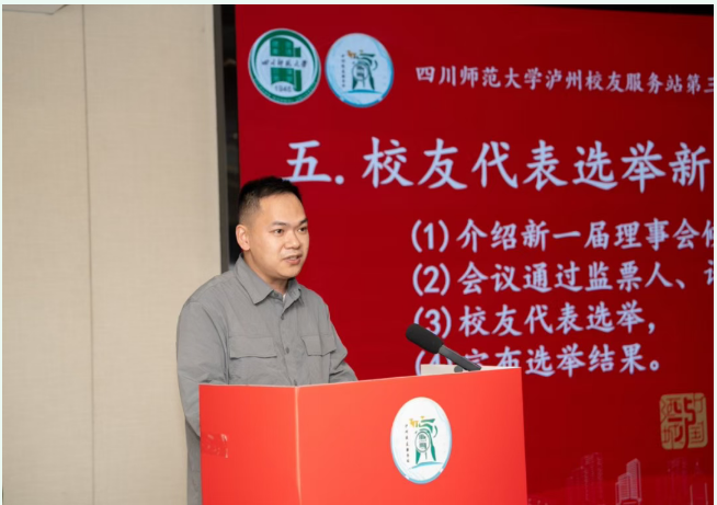 四川师范大学重庆校友服务站朱翰靓、绵阳校友服务站赵文浩、宜宾校友服务站刘亮等兄弟校友服务站代表先后致辞,对泸州校友服务站新一届理事会的产生表达了热烈祝贺与美好祝愿。