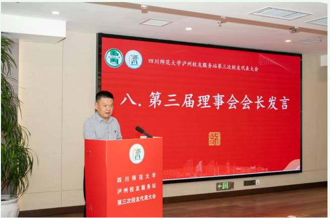 新任会长李渝江在会上作表态发言,他表示,新一届理事会将继承优良传统,开拓创新,充分发挥桥梁纽带作用,凝聚广大在泸校友力量,不断提升服务水平,为校友成长、地方发展和母校建设贡献智慧与力量。
